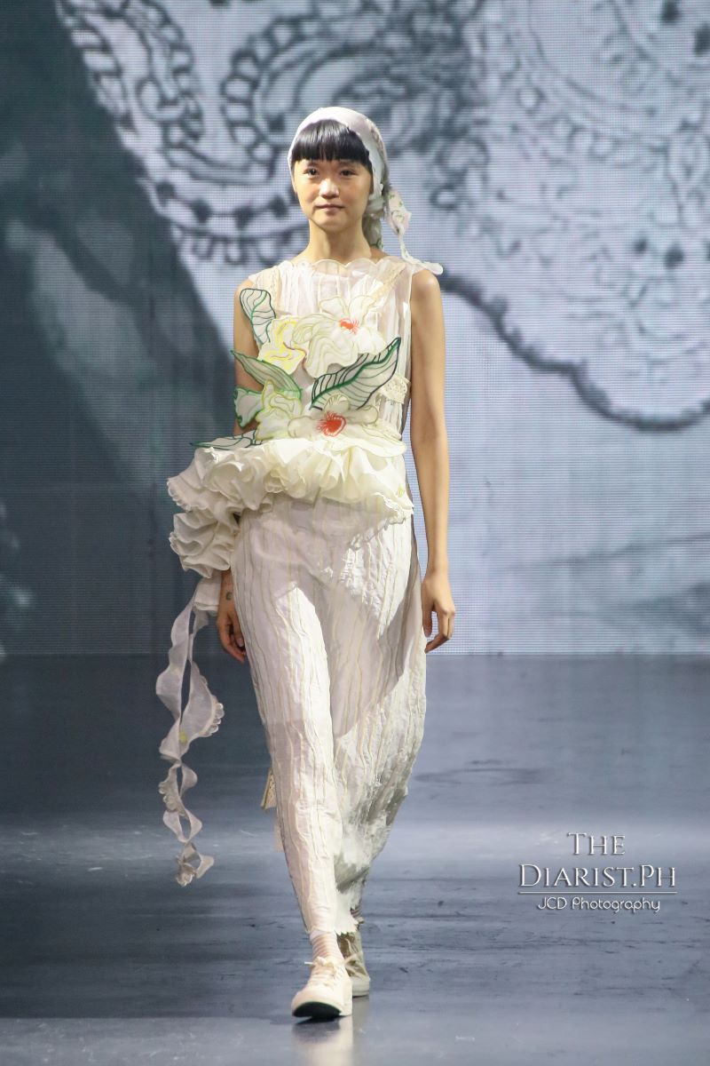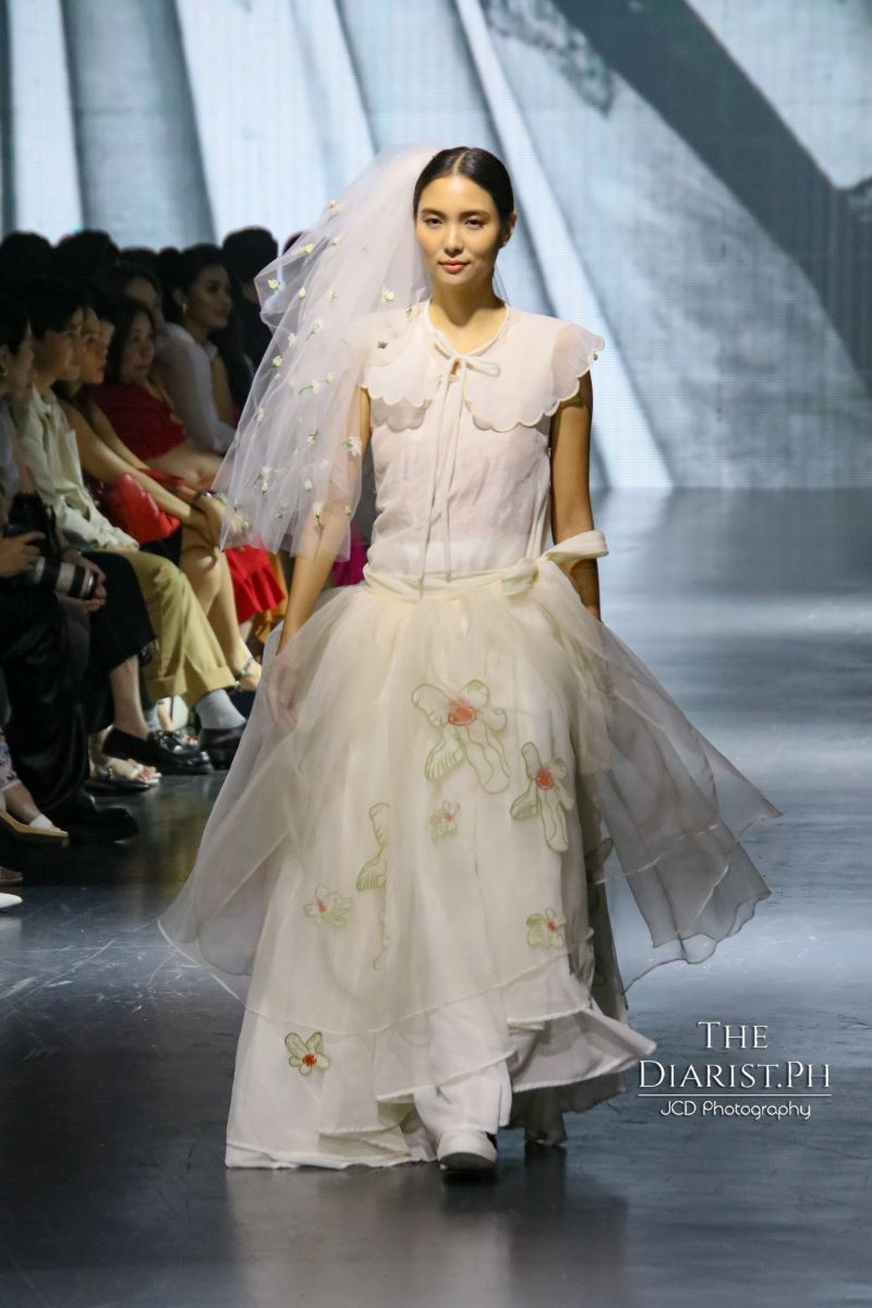 The audience noticed the fabrics—dyed silk linen, piña shifu, Japanese organza, US organza, bridal tulle, European gauze, and cotton voile. These fabrics stuck to a monochromatic ecru.
